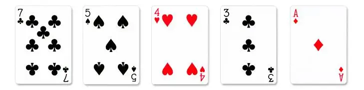 Five uniquely ranked cards with the highest card being a 7.