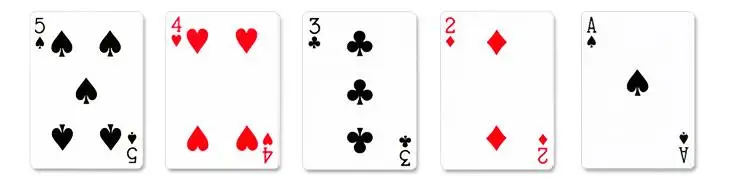 5, 4, 3, 2 and Ace - Also known as the "bicycle" or "wheel".